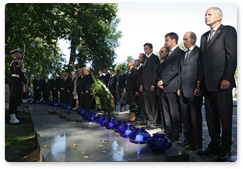 Prime Minister Vladimir Putin took part in a memorial ceremony at the Tomb of the Defenders of the Coast in the Westerplatte Memorial