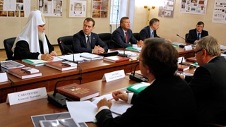 Your Holiness, ladies and gentlemen, I cannot help but share my emotions with you, and not only because this is the first meeting of our foundation's board of trustees here in the New Jerusalem Monastery, but also because (and in any event we have shared our impressions with his Holiness) we can see what has been accomplished compared to what was here only recently. This means that we are on the right track, that the work of the foundation's board of trustees and the tremendous number of people who are involved in the monastery’s restoration, who are contributing to it – to whatever large or small degree – is producing results. These results imbue us with confidence that the monastery will be restored to its original beauty and will probably look even better than before, though this is hard for us to judge.