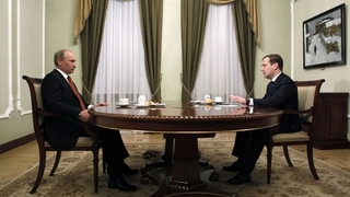 Prime Minister Dmitry Medvedev meets with President Vladimir Putin